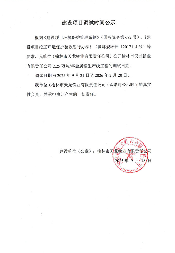天龍鎂業(yè)金屬鎂2.25萬(wàn)噸、蘭炭50萬(wàn)噸驗(yàn)收公示